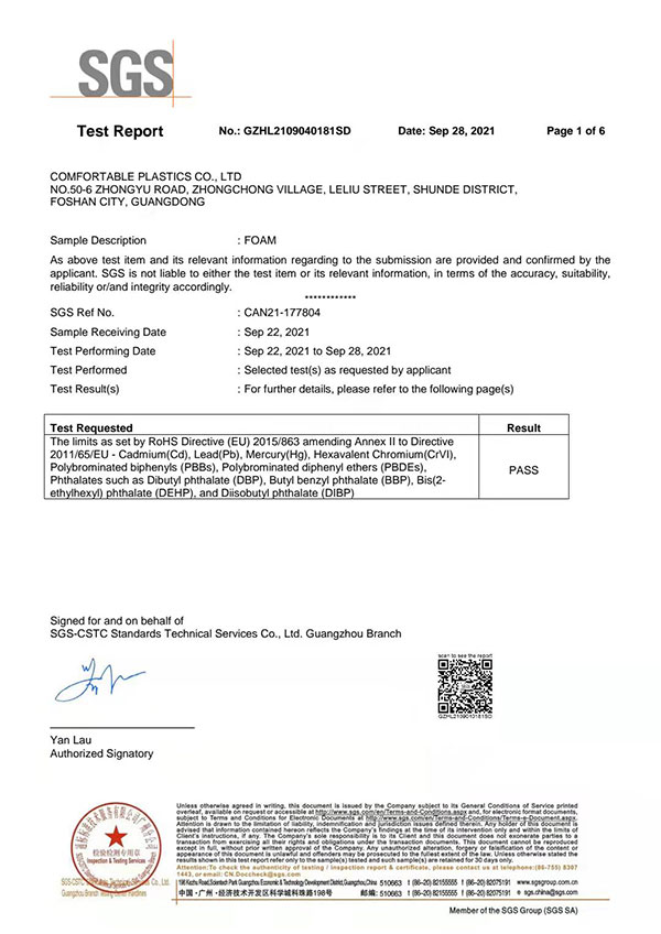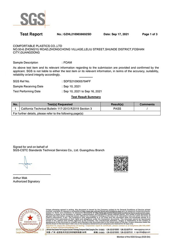 SGS,ISORosH, REACH, CAL 117 2013, Prop 65 Fire Retardants