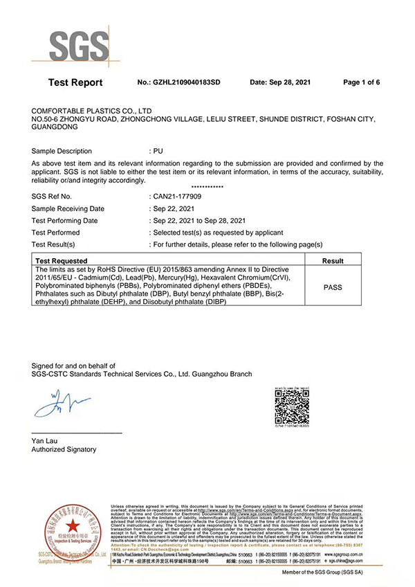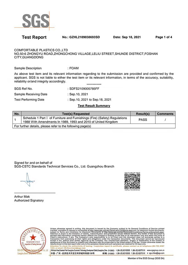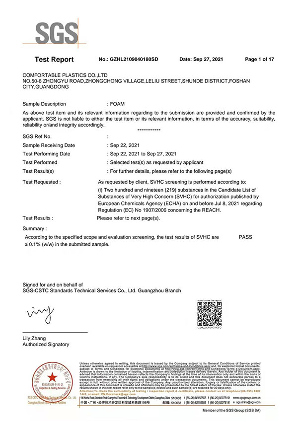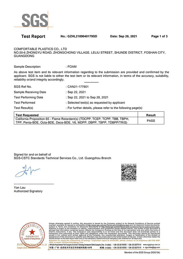SGS,ISORosH, REACH, CAL 117 2013, Prop 65 Fire Retardants